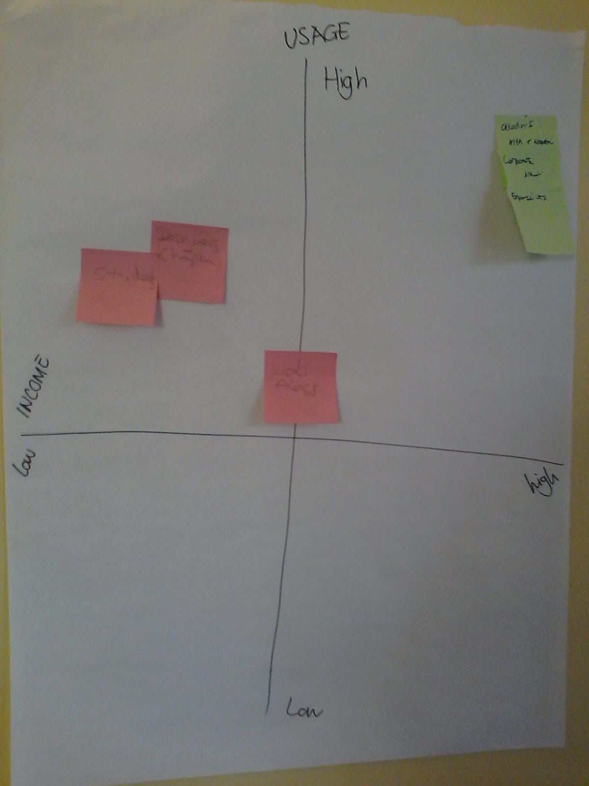 On a grid each group mapped the potential users that might find such a product valuable, using income and usage as parameters to find the focus target market.